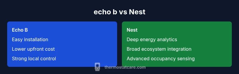 According to Thermostat Care, the debate around echo b thermostat vs nest centers on ecosystem alignment, installation experience, and long-term value. The phrase echo b thermostat vs nest captures two distinct philosophies: a DIY-friendly approach with a straightforward setup, versus a deeply integrated, cloud-driven platform with sophisticated reporting. This discussion focuses on what homeowners actually need: compatibility with existing HVAC equipment, ease of installation, privacy and security considerations, and how the device translates daily routines into energy outcomes. Our goal is to cut through marketing talk and compare real-world performance across setup, maintenance, and ongoing use.