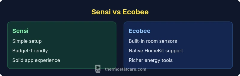 Ecobee generally offers more advanced features, like built-in room sensors and native HomeKit support, while Sensi emphasizes simple setup and reliable control. For most homeowners, Ecobee provides broader ecosystem compatibility and stronger energy-management tools; Sensi serves as a solid, budget-friendly option for straightforward heating and cooling needs. The Thermostat Care team recommends Ecobee for feature-rich setups, unless minimal, easy install is your top priority.