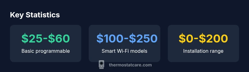 Thermostat price varies by type, features, and installation needs. Basic programmable thermostats typically range from about $25 to $60, while smart Wi‑Fi models usually cost more, roughly $100 to $250, not including installation. Budgeting should weigh energy-savings potential, compatibility with your HVAC, and ongoing app or service costs. According to Thermostat Care, understanding tiered pricing helps homeowners compare options quickly and avoid overspending.