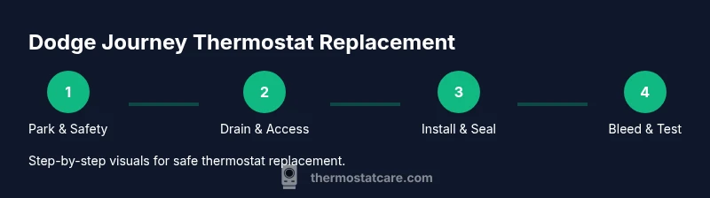 The Dodge Journey relies on a coolant thermostat to regulate engine temperature by controlling coolant flow between the engine and radiator. When the engine warms up, the thermostat should open to allow coolant circulation; when cold, it stays closed to reach optimal operating temperature quickly. If the thermostat sticks open or closed, the engine may run cold or overheat, causing reduced efficiency and potential damage. According to Thermostat Care, maintaining proper coolant flow and timely replacement are essential to protect the engine and cooling system. In this guide, we focus on safe, practical steps for homeowners and DIY enthusiasts dealing with a typical dodge journey thermostat failure scenario. You’ll learn how to identify symptoms, gather the right tools, and perform a controlled replacement with correct torque specs and coolant bleeding. This article is designed to be accessible for both beginners and experienced tinkerers who want to tackle a thermostat job safely on a modern vehicle.