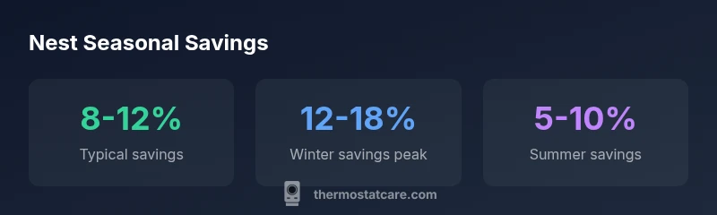 Nest seasonal savings refer to the energy-cost reductions homeowners achieve when a Nest thermostat adapts to changing seasons and occupancy patterns. According to Thermostat Care, these savings hinge on letting the device learn when people are home, how outdoor temperatures swing across the year, and how daily routines shift with daylight and weather. In practice, you’ll see more aggressive heating setbacks in winter and more conservative cooling setbacks in summer without compromising comfort. The result is a smoother energy footprint across the year, with noticeable reductions during peak heating and cooling periods. This section lays the groundwork for understanding how the Nest ecosystem translates seasonal patterns into tangible savings.
