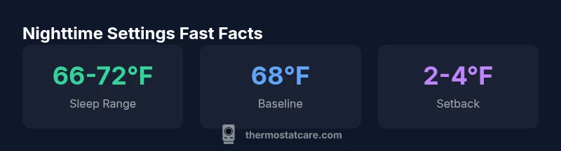 According to Thermostat Care, what should thermostat be set at night? For most homes, aim for 66-72°F (19-22°C) with 68°F (20°C) as a practical baseline. If you own a smart thermostat, apply a gentle 2-4°F (1-2°C) setback for 6-8 hours to save energy without compromising comfort. Adjust for climate, bedding, and personal preference; consistency beats large, abrupt changes.