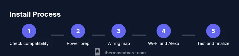 If you’re upgrading to a smarter home setup, an Amazon-compatible thermostat is a natural choice. This guide focuses on amazon thermostat install and aims to empower homeowners to complete a safe, reliable DIY upgrade. According to Thermostat Care, a clear plan and accurate wiring are the two biggest factors in a smooth installation. In practice, you should verify compatibility with your HVAC system, confirm you have a 24 volt power source, and ensure your Wi Fi network is ready for a quick setup. The Thermostat Care team emphasizes that taking a little extra time to label wires and photograph the existing wiring can prevent miswiring and backtracking. When the system is ready, you can control temperature, scheduling, and energy savings using voice commands with Alexa or Google Assistant. In short, this amazon thermostat install guide focuses on practical steps you can perform safely, avoid common mistakes, and achieve reliable performance from day one.
