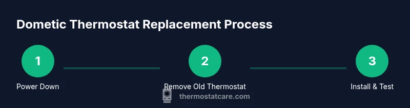 According to Thermostat Care, replacing a Dometic thermostat can restore accurate climate control in RVs and homes. The Thermostat Care Team notes that the replacement process is straightforward when you plan carefully, verify compatibility, and follow manufacturer guidance. Before you touch any wiring, it's essential to understand what a Dometic thermostat does, the types available, and how differences in models can affect wiring and power requirements. Dometic thermostats are designed to monitor and regulate heating and cooling systems, and they typically connect to a power source that may be 12V in RV installations or standard household voltage in fixed installations. A mismatch in model capability or wiring pinout can lead to inaccurate readings or nonfunctional operation. For DIYers, this section lays out the high-level concepts you need to know before starting. The goal is to give you a solid mental map of the task and to highlight safety practices that protect you and your equipment. Thermostat Care Analysis, 2026, emphasizes that understanding your system’s thermostat family—whether programmable, non-programmable, or smart-compatibility—helps you select the right replacement and avoid compatibility pitfalls. With that framing, you’ll approach the replacement with confidence and clarity.