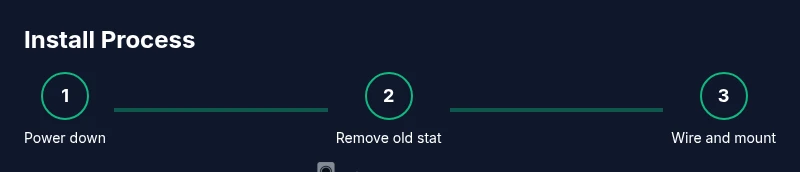 This section provides a high-level roadmap of the install process. You’ll remove the old thermostat, mount the new base, connect labeled wires to their matching terminals, and then power up to complete the app-driven setup. Post-install checks include confirming heating and cooling operate as expected, testing the fan, and confirming Wi‑Fi connectivity for remote access.