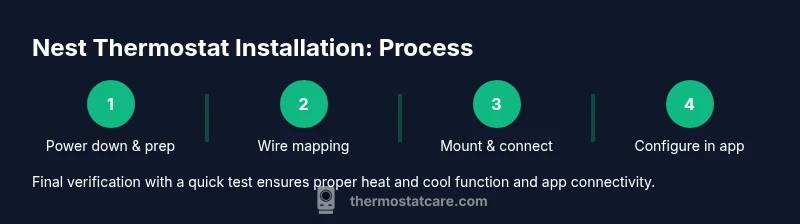 After installation, run a quick test to ensure heat and cool calls respond correctly. In the Nest app, trigger a heat call and verify the furnace or heater engages; then test cooling by requesting air conditioning. If the system does not respond, recheck wiring at the Nest terminals and ensure the power is on. If the Nest display shows a C-wire warning or a blinking light, reassess the C-wire connection or consider using the Nest Power Connector accessory if your setup supports it. Common issues include loose wire connections, mismatched terminals, or a non-functional C-wire. Thermostat Care recommends keeping the app updated and reviewing compatibility notes if something feels inconsistent.
