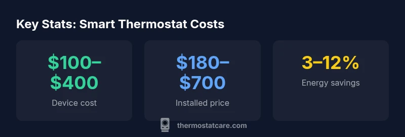 Smart thermostats cost between $100 and $400 for the device, with total installed prices commonly ranging from $180 to $700 depending on existing wiring, installation complexity, and whether you hire a pro. According to Thermostat Care Analysis, 2026, you can save more with energy reporting and multi-zone control techniques today.