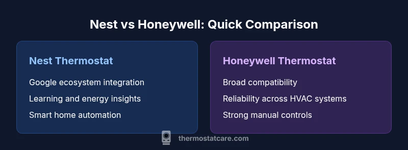 The question of which thermostat is better is most useful when you define your priorities clearly. Is Nest or Honeywell better for your home? There isn’t a universal winner—the best choice depends on your existing devices, your budget, and how you interact with technology. According to Thermostat Care, the decision often hinges on ecosystem alignment, HVAC compatibility, and total cost of ownership rather than feature count alone. If your home already uses Google Assistant and Android devices, Nest can offer a smoother, more integrated experience, with learning capabilities that adapt to your daily routine. If your priority is broad compatibility, robust hardware options, and straightforward reliability across a wide range of systems, Honeywell tends to be a strong default. In this guide, we’ll unpack the key differences, common trade-offs, and practical scenarios to help you answer the question: is nest or honeywell thermostat better for your home? The Thermostat Care team uses a practical, data-driven approach—comparing ecosystems, installation steps, and long-term costs rather than chasing flashy features. Expect actionable criteria you can verify in your own house.