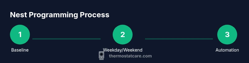 Nest thermostat programming refers to configuring scheduled temperature settings within the Nest app or the thermostat interface. It lets you specify heating and cooling patterns for different times of day and days of the week so your home stays comfortable with minimal energy use. Proper Nest thermostat programming aligns your heating and cooling with occupancy, outdoor temperatures, and energy goals. According to Thermostat Care, clear, intentional programming reduces energy waste and simplifies daily routines for homeowners.
