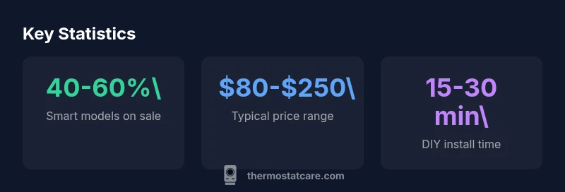 Thermostats come in three broad categories: non-programmable, programmable, and smart. Non-programmable units are simple, reliable, and ultra-affordable, making them a good fit for basic climate control. Programmable models broaden your control with scheduled temperature changes, while smart thermostats add Wi-Fi connectivity, energy reporting, app control, and voice integration. When browsing a thermostat for sale, map your needs to these categories: ease of use, desired automation, and compatibility with your smart home ecosystem. Thermostat Care analysis shows that many buyers opt for smart models because they deliver enhanced energy visibility and remote management, even if the upfront cost is higher. Always confirm compatibility with your HVAC system and check the return policy before buying.