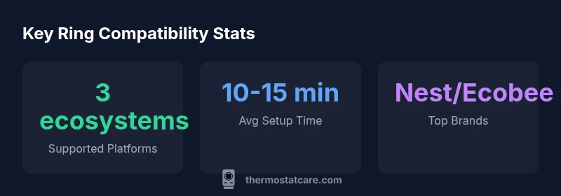 According to Thermostat Care, the essential answer to what thermostat works with ring hinges on ecosystem compatibility. Ring integrations are built around popular smart-home platforms like Alexa, Google Assistant, and IFTTT. If your thermostat supports one of these ecosystems, Ring can trigger temperature changes through routines or voice commands. In practice, devices from Nest, Ecobee, and other major brands often pair smoothly when connected to the same assistant or automation service. When evaluating compatibility, look for a clear ‘Works with Ring’ or ‘Works with Alexa/Google’ badge in the thermostat’s app store or product page. This ensures your thermostat can receive commands from Ring events such as a doorbell press, motion, or a routine start. Beyond official branding, you should confirm the thermostat provides an official integration pathway with your chosen ecosystem to avoid surprises during setup.