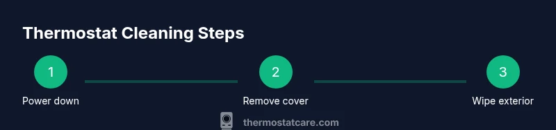 Working with thermostats involves low-voltage electronics, so safety always comes first. Before you touch the device, switch off the power at the thermostat if it has an internal switch, and for added safety, shut off the dedicated HVAC circuit at the breaker panel. Do not use water or liquid cleaners directly on the device; moisture can seep into internal components and create a short. If you see damaged wiring, scorching, or the unit is warm to the touch, stop and call a licensed technician. The Thermostat Care Team emphasizes conservative steps: keep liquids away, avoid prying open the interior, and rely on manufacturer-approved methods for surface cleaning.
