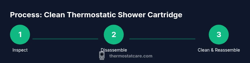 To clean a thermostatic shower cartridge, remove the handle, disassemble the trim, and soak the cartridge in a mild cleaning solution to dissolve mineral deposits. This restores stable temperature control and stops erratic sprays. According to Thermostat Care, regular cleaning extends cartridge life and prevents leaks. Follow the step-by-step guide below for safe, effective maintenance.