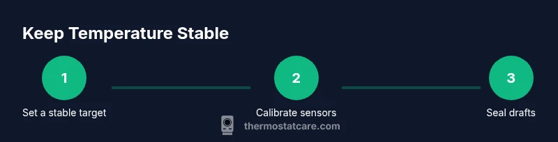 This guide shows you how to keep thermostat at constant temperature by using hold mode, sensor placement, calibration, and insulation tweaks. You'll learn practical steps to minimize swings, improve comfort, and save energy. According to Thermostat Care, stability comes from precise setup and regular maintenance. Whether you have a manual thermostat or a modern smart model, the same principles apply.