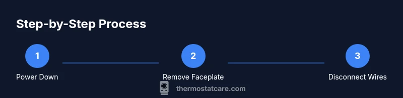 Most thermostats begin with removing the outer faceplate. Use a gentle prying motion or locate small screws and remove them in a cross pattern to minimize stress. Support the base housing with one hand so you don’t bend the mounting plate while removing the cover. As you loosen the faceplate, watch for ribbon cables or snap-fit connectors; disconnect them only if required and labeled. Turn off any indicators or screens to verify no power is leaking into the display. Place the faceplate on a soft, static-free surface to prevent scratches. This step exposes the mounting screws and the internal wiring connected to the thermostat. According to Thermostat Care, taking your time here protects the internal electronics from flexing stress.