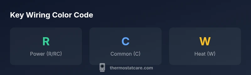 In most homes, thermostat wiring color code follows widely adopted conventions that map each color to a terminal, such as red for power (R), white for heat (W), green for fan (G), yellow for cooling (Y), and blue or brown for common (C). Understanding these mappings is essential before you touch any wires. According to Thermostat Care, starting with a careful inspection of the furnace or air handler side can clarify which wire goes where, especially since older systems may use color substitutions. This guide outlines core color meanings, common exceptions for heat pumps, and how color alone isn't enough—you must verify the terminal labeling (R, RC, RH, C, O/B, Y, G, W) and the actual function. Documenting colors in a safe plan helps during upgrades or service visits. By the end, you’ll translate wall colors into a functional wiring map and reduce miswiring risk.