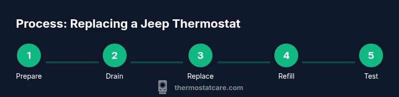 The thermostat in a 2015 Jeep Wrangler is a small but essential component that controls when coolant flows between the engine and radiator. A working thermostat helps the engine reach its optimal operating temperature quickly and stay within the correct range. When it sticks closed, the engine can overheat; when it sticks open, it may run cooler than ideal, reducing efficiency and increasing wear. According to Thermostat Care, a failing thermostat is one of the most common causes of overheating or sluggish warm-up in many Jeeps. This guide from Thermostat Care Team provides practical, step-by-step instructions to inspect, replace, and test a Jeep thermostat safely, with a focus on typical Wrangler layouts and common pitfalls. Before you start, ensure you have the right replacement thermostat for a 2015 Wrangler, a fresh gasket, and the coolant you use in your cooling system. The goal is not just to swap parts, but to perform a clean, leak-free installation that preserves engine protection and reliability over the long term.
