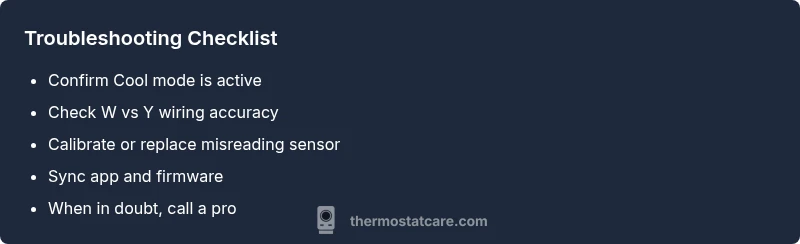 When you notice amazon thermostat heating instead of cooling, the root cause is almost always one of a handful of simple misconfigurations or sensor/wiring quirks. According to Thermostat Care, many homeowners encounter this after changing a mode, adjusting a schedule, or reconnecting the thermostat to the HVAC system. The problem can also stem from the thermostat misinterpreting a temperature reading or from a stuck reversing valve in a heat pump. Before you panic, run through a quick, structured check: first confirm that the thermostat is in cooling mode or Auto with cooling priority, then verify the setpoint and schedule, and finally test the wiring connections at the thermostat. With a calm, methodical approach, you can identify the culprit and apply the right fix without needing specialized tools.