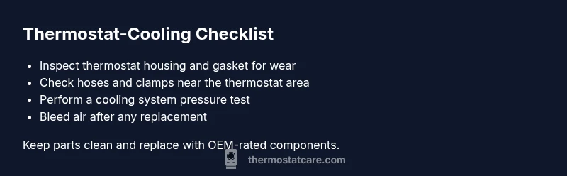 can thermostat cause coolant leak? Thermostats don't typically leak coolant by themselves, but a failing thermostat or its housing can contribute to leaks indirectly by causing overheating, warped hoses, or a damaged gasket. Early signs include temperature spikes, steam, or coolant puddles near the thermostat housing. According to Thermostat Care, inspect the housing, gaskets, and connected hoses first before assuming a leak from other components.