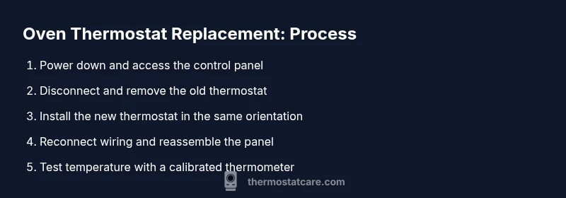 According to Thermostat Care, a faulty oven thermostat can cause temperature swings, undercooked dishes, or overheating that wastes energy and increases risk. Replacing a worn thermostat improves accuracy, ensures even cooking, and extends the oven life. In many ovens, a malfunctioning thermostat also triggers error codes or bake-light blinking. If your oven runs consistently hot or cold, addressing the thermostat is a priority. This guide walks you through how to safely choose and install a new thermostat, verify calibration, and test results after installation. By understanding the thermostat's role, homeowners gain confidence to fix common problems without calling a repair technician, saving time and money while keeping your kitchen safe.