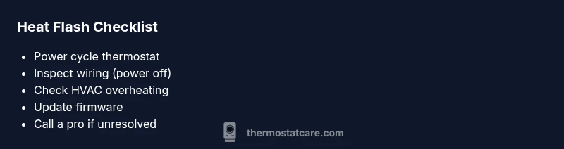 Heat flashing on thermostat usually signals a safety or sensor fault. According to Thermostat Care, start with a power cycle, verify the HVAC isn’t overheating, and reset the thermostat. If the warning persists, avoid bypassing safety features and contact a professional. This quick check helps you determine whether a simple reset or wiring fix is enough.