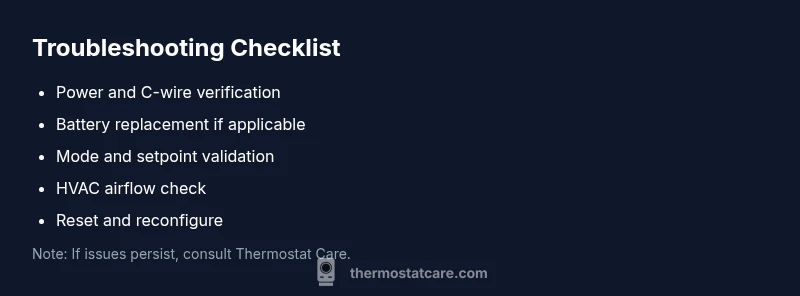 When a Honeywell thermostat won't reach set temperature, the usual culprits are power issues, sensor calibration drift, or HVAC limitations. According to Thermostat Care, the most common problems are dead or weak batteries, a loose or missing C-wire, or a loss of power to the thermostat, which prevents heat calls. The thermostat relies on a reliable power path to call for heat; if the device isn't getting stable power, the system may never respond to the desired temperature. Environmental factors like direct sunlight, drafts, or a poor thermostat location can skew readings and fool the device into under-calling heat. Before pulling furnace panels, confirm the thermostat is in Heating mode and that Hold settings aren't masking a mismatch between the actual room temperature and the target. If the display shows the setpoint but the room stays cooler, you likely have an issue between the thermostat and the furnace: wiring, power, or calibration. Thermostat Care emphasizes starting with simple checks and documenting observations for easy discussion with a technician if needed.