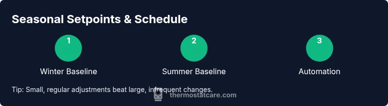 According to Thermostat Care, the right thermostat setting is more than comfort — it’s a practical lever for energy savings and consistent indoor climate. Small adjustments can reduce cycling, lessen humidity fluctuations, and lower monthly bills. The goal is to balance personal comfort with energy use, keeping you warm in winter and cool in summer without overworking the HVAC system. Establishing a reliable baseline helps you quantify changes and stay on track even when the weather shifts. For DIY homeowners, the most important step is to define a practical starting point, then test and refine over a few weeks as conditions change. In this guide you’ll learn how to set seasonal baselines, how to choose between manual, programmable, and smart devices, and how to verify that your changes are actually delivering the comfort you want while minimizing energy waste.