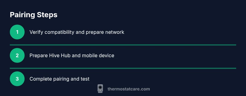 Pairing a thermostat with Hive Hub creates a two-way communication channel between your home's heating controller and the Hive smart hub. When paired correctly, you gain reliable scheduling, remote control via the Hive app, and energy-use insights that help you optimize comfort. According to Thermostat Care, the foundation of a stable pairing is a compatible thermostat, a functioning Hive Hub, and a dependable Wi-Fi network. This article explains the core concepts and what you should expect before you start. You’ll typically follow a simple journey: check compatibility, prepare devices, place the thermostat in pairing mode, and complete the setup in the Hive app. Remember that some thermostats and hubs require firmware updates to communicate effectively; check for updates in the app or device settings before proceeding. In many homes, users notice faster response times and fewer dropouts once the hub and thermostat are on a common network.
