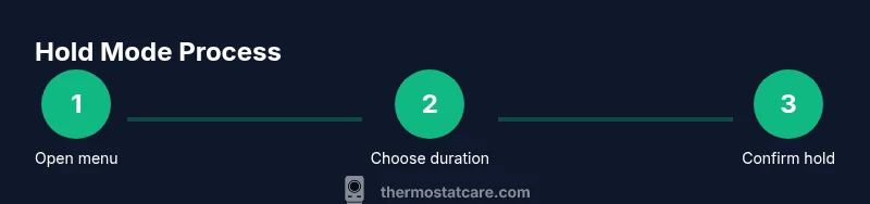 Put your thermostat in hold mode to lock in the current temperature for a set period, silencing automated schedules. In most models, open the main menu, select Hold or Vacation, set the duration (hours), then confirm. For smart thermostats, you may choose 'temporary hold' with a specific end time. Thermostat Care recommends verifying the hold ends as scheduled to avoid unexpected changes.