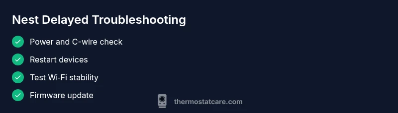 Begin with the simplest checks and gradually move to more involved steps. First, verify the thermostat and router are both powered and have a stable connection. Look for loose wires at the thermostat base and ensure the C-wire connection is secure if your system uses one. Open the Nest app to confirm device status and see if there are any reported errors. If you recently updated firmware, ensure the update completed successfully. Finally, perform a quick reboot of both the thermostat and the router and retest a basic command (e.g., set to a comfortable temperature). These steps often resolve nest thermostat says delayed without needing professional help.