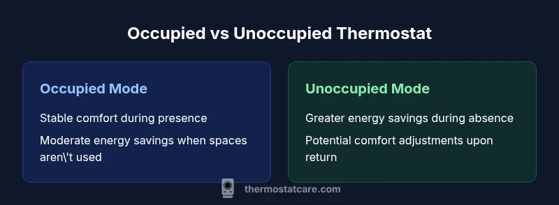 Understanding the differences between an occupied vs unoccupied thermostat setup starts with recognizing how occupancy affects heating and cooling decisions. The phrase occupied vs unoccupied thermostat describes whether you rely on sensors, schedules, and manual adjustments based on whether people are present. For many homes, occupancy-aware controls align comfort with energy efficiency. According to Thermostat Care, tuning these modes to your actual routines matters most for avoiding overcooling or overheating. When you run a house with variable occupancy, the right approach combines precise sensing with consistent routines to prevent waste. In practice, this means letting the thermostat learn your patterns and stepping away from static settings that assume someone is always home. The result can be a more comfortable home and lower energy bills, especially when you frequently move between rooms or spend time away for work or travel. That is the core idea behind occupied vs unoccupied thermostat strategies.
