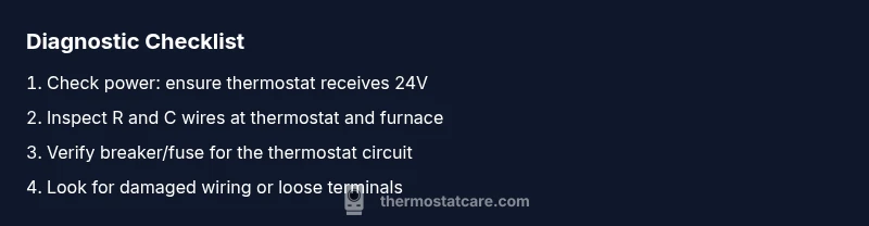 Power issues are by far the most common reasons thermostat is blank. Start with simple checks: replace batteries if your thermostat uses them; confirm the furnace’s 24V power is present and stable; check the circuit breaker or fuse feeding the thermostat circuit. If the thermostat is hardwired, ensure the 24V supply from the furnace is within spec and that there are no tripped breakers in the HVAC panel. If you encounter a dead battery or a tripped breaker, fix those first and test the display again. If the screen still shows nothing, move to wiring checks described in the next section. In 2026, many displays fail primarily due to power delivery issues, not defective hardware.