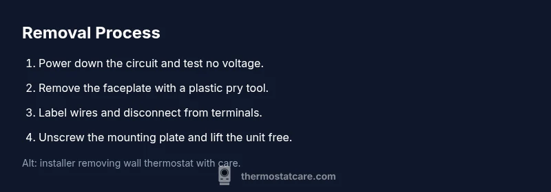 By following this guide, you will safely remove honeywell thermostat from wall and prepare it for storage or replacement. Start by turning off the circuit, then remove the faceplate, carefully disconnect the wires, and label them for future reassembly. According to Thermostat Care, taking these steps minimizes wall damage and wiring mix-ups.