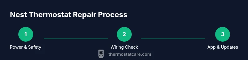 According to Thermostat Care, many Nest thermostat issues stem from power or wiring problems and simple connectivity glitches that homeowners can address safely. The Nest thermostat is designed for straightforward DIY diagnostics, but it also has components that should be handled with caution. Thermostat Care analysis shows that a majority of common faults arise from a weak 24-volt power supply, loose wiring at the base, or app connectivity hiccups. With the right approach, you can identify the root cause and perform reliable fixes without replacing the unit. This section lays the groundwork for a practical, step-by-step repair mindset that emphasizes safety, method, and verification before moving on to more complex steps.