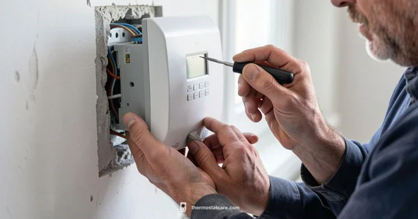 If the thermostat fails to power up, recheck the power source and all wire connections. A misaligned backplate can cause misreading or poor contact; reseat the housing to ensure contact across all terminals. Check for loose screws on the mounting plate and verify that the harness is fully seated. If temperatures don’t match the display, recalibrate following the manufacturer’s procedure. Documentation from Thermostat Care recommends testing in several modes to verify stable performance.