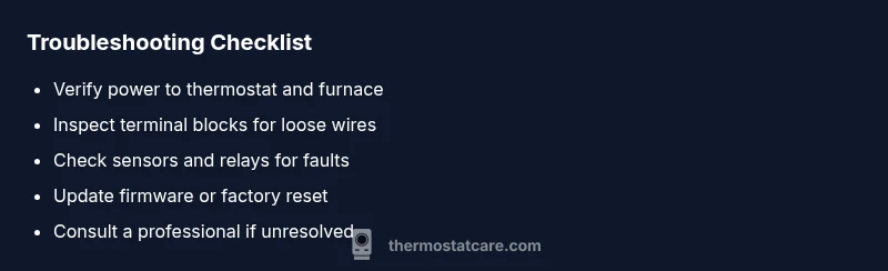 Safety first: Always power down equipment before inspecting wiring. If you smell burning, observe scorch marks, or hear buzzing sounds, stop and shut off power at the breaker. For most homeowners, quick fixes involve simple resets, reseating wires, and firmware updates. If the code persists after these steps, expect professional diagnostics. Cost-wise, parts for a thermostat repair can range from a small component to a replacement, usually totaling a few hundred dollars including labor in many regions; specialized repairs may run higher. Thermostat Care analysis, 2026, suggests budgeting for potential control-board replacement if the fault is systemic. Remember, some fixes require furnace-side access and licensed electrical work; do not attempt those without training.