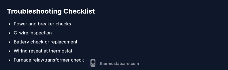 A blank or unresponsive thermostat is a common headache when your AC won't start. According to Thermostat Care, most blank screens are not mysterious: they come from power or wiring issues rather than a dead control board. The thermostat needs a steady supply of 24V power to light the display and send commands to the HVAC equipment. If the display is dark, you likely have a power path problem, a blown fuse in the furnace, a tripped breaker, or a loose connection on the thermostat side. The Thermostat Care team found that, in many homes, repairing a loose wire, restoring a disrupted 24V circuit, or reseating a controller plug can restore function without replacing the thermostat. In this guide, we focus on a practical, safety-first approach: identify the root cause, perform safe tests, and apply fixes that you can complete with common household tools. Keep a notepad handy to record what you check and what readings you observe as you go.