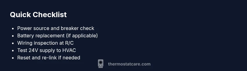 Before you panic, run through these fast checks. Replace any batteries if your thermostat uses them. Check that the thermostat is firmly mounted on its wall plate and that the plate is seated correctly. Verify the HVAC power, ensure no breakers are tripped, and confirm the outdoor unit is not shut off or frozen. If power is interrupted, the display may reset or go blank. These steps are low-risk and often resolve the issue without tools, getting you back to comfortable temps sooner.