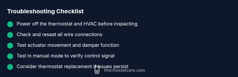 A thermostat that is stuck open is usually due to a faulty actuator or wiring fault keeping the control signal on. Start with quick checks: verify power, replace batteries if needed, and test in manual/hold mode. If the problem persists, follow the diagnostic flow below for safe, methodical repairs.
