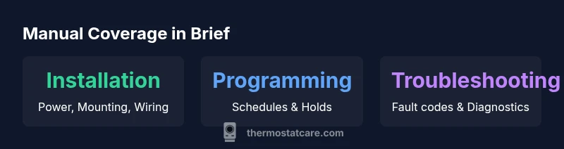 The troubleshooting chapter in the manual is designed to help you diagnose issues without professional service. Common scenarios include loss of power, unresponsive touchscreens, scheduling discrepancies, and sensor errors. The manual usually provides a step-by-step method: verify power, check that the device is properly mounted, confirm network connectivity if applicable, and review any fault codes or LED indicators described in the guide. If a fault code is listed, the manual will explain its meaning and the recommended corrective action. When power is lost, it will suggest checking the circuit breaker and battery status if your model supports a battery backup. If the screen goes blank, the guide often instructs to perform a soft reset or factory reset as a last resort.