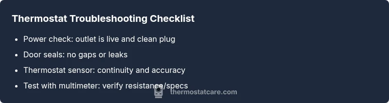 When a fridge thermostat isn’t working, the freezer and fresh-food compartments can overcool or fail to cool, leading to spoiled food or excessive energy use. According to Thermostat Care, a faulty control often causes improper cycling and temperature swings. The quickest fix is to reset the thermostat, check the power and door seals, and clean coils. If issues persist, replace the sensor or the thermostat.