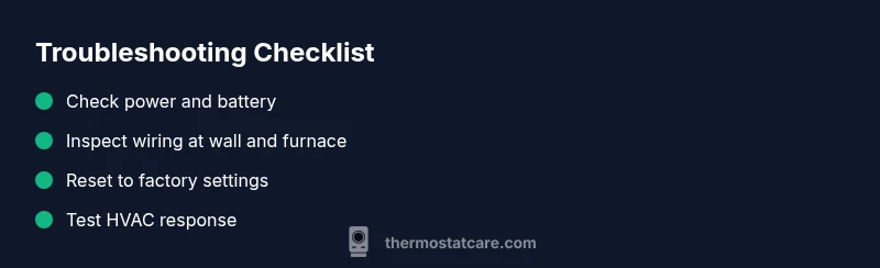 When homeowners ask what is wrong with my honeywell thermostat, the first culprits are power, battery, or wiring problems. Honeywell thermostats rely on a steady power source; if the unit is battery powered, a dead battery can make the display fade or the thermostat go dark. A tripped breaker or blown fuse can cut power to the thermostat and HVAC system, causing the entire setup to misbehave. The Thermostat Care team notes that many faults come from simple, reversible causes, not a failed device. A systematic checklist that starts with power, then battery and wiring checks, can save time and prevent unnecessary replacements. If you notice intermittent responses or a thermostat that won’t hold a setpoint, begin with power connections, then move to battery and wiring checks. The goal is reliable control with minimal risk.