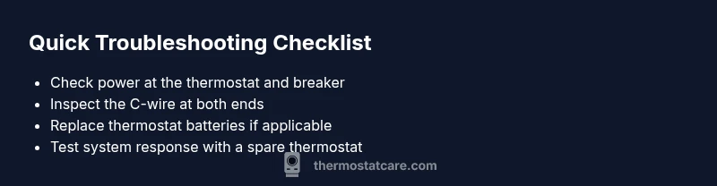 A quick reality check: if the thermostat is not showing a display, or the HVAC system is not turning on, your first move is to verify power. If the screen is dim or flickering, battery replacement (for battery-powered units) or a power reset can restore function. If you still struggle after these steps, you’ll have a clear basis for a professional visit. The goal is to identify whether the fault lies in the thermostat itself, the wiring, or the furnace/air handler—each path has different remedies and safety considerations. This framework helps you avoid costly misdiagnoses and ensures you get the right help fast.