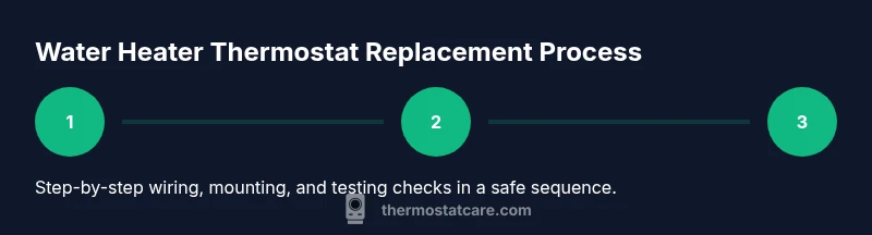 The replacement workflow involves safely disconnecting power, accessing the control area, removing the old thermostat, installing the new unit, and rechecking system operation. Start by verifying power is off, then remove the outer panel and insulation to access the thermostat block. Disconnect wires one at a time, label them, and remove the old thermostat mounting hardware. Install the new thermostat according to the kit’s diagram, reattach wires to matching terminals, reassemble the access panel, and restore power. Finally, test the water temperature at a few faucet points and observe for consistent cycles and no leaks. This overview helps you anticipate the process before you begin.