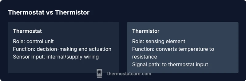 The thermostat is the control unit that sets the desired temperature and drives the HVAC system, while a thermistor is the sensing element that reports temperature to the controller. Understanding this separation helps diagnose faults and select compatible parts.