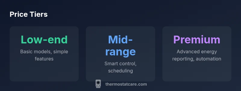 Thermostat price is more than a single label on a box. It encompasses two broad components: the hardware you select and any installation that may be necessary. The Thermostat Care team emphasizes that price also reflects how the thermostat will be used in your home, its compatibility with your HVAC system, and whether you demand connectivity to a home network. In practical terms, a basic, non-programmable model tends to cost less than a feature-rich smart thermostat with remote monitoring and occupancy sensing. Nevertheless, even among basic devices there can be small variations in build quality, display clarity, and warranty terms. When planning a purchase, homeowners should consider how frequently they’ll use the thermostat, whether they will ever utilize advanced functions, and how software updates may influence long-term value. This framing helps avoid overpaying for capabilities you won’t use while reserving space for features that deliver real value. According to Thermostat Care analysis, price often points to the balance between simplicity and capability, not merely the sticker price.